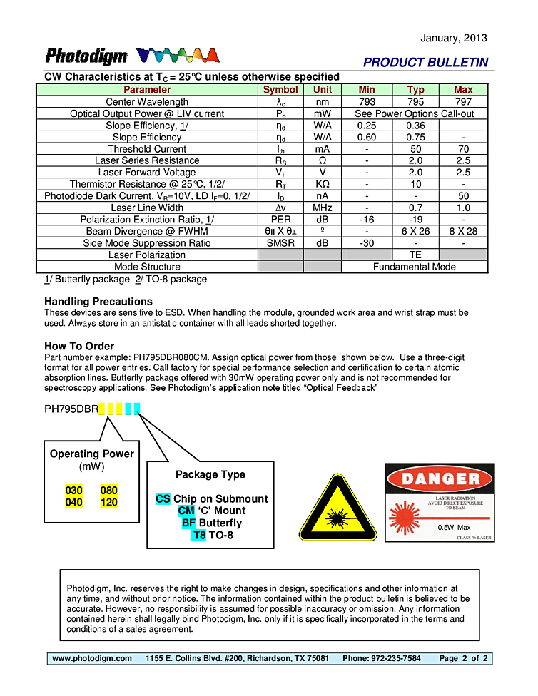 波長: 795nm-795nm 出力: 120mW-120mW パッケージ: COC, TO-can, c-mount, butterfly テクノロジー: DBR