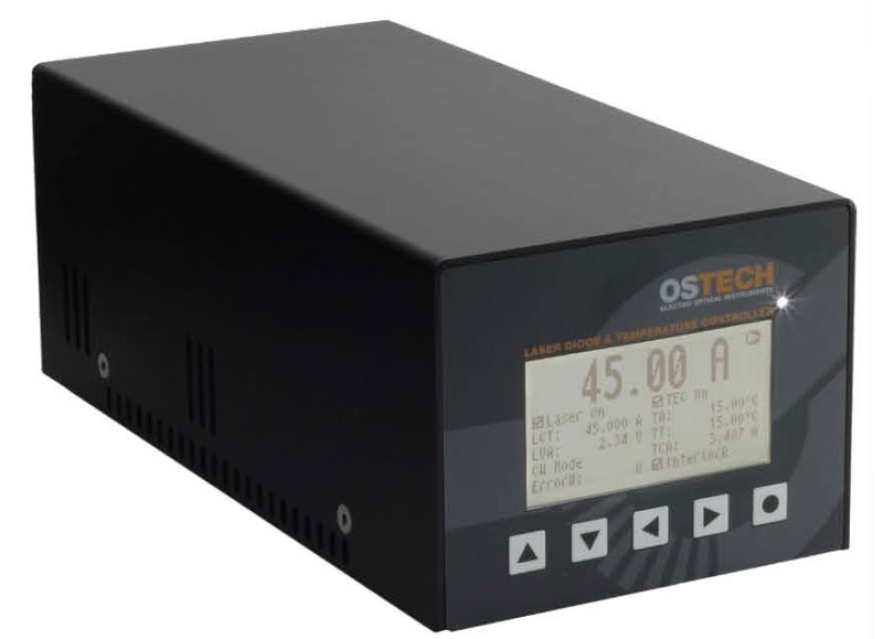 This complete laser diode driver and temperature control system is a convenient and high performance solution for cooling and temperature stabilization of high power multimode laser diodes in laboratory environments. Standard mounting hole footprint patterns are available for most high power fiber coupled modules and package styles. Custom mounting hole patterns are available upon request. A high power and high reliability TEC element embedded under the laser mounting plate works with the dual fans to to provide fast heat removal and stable temperature control. These driver and control systems come with a standard RS-232 and USB interface. Additionally, complete control is available through an intuitive front panel LCD display with a simple menu structure.