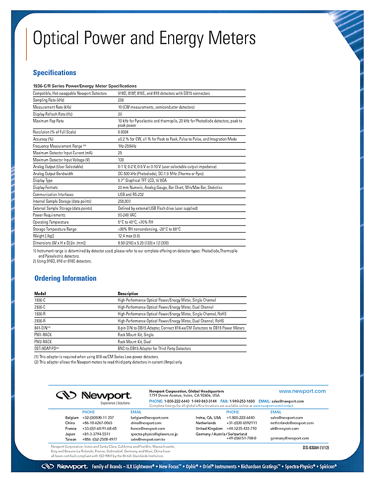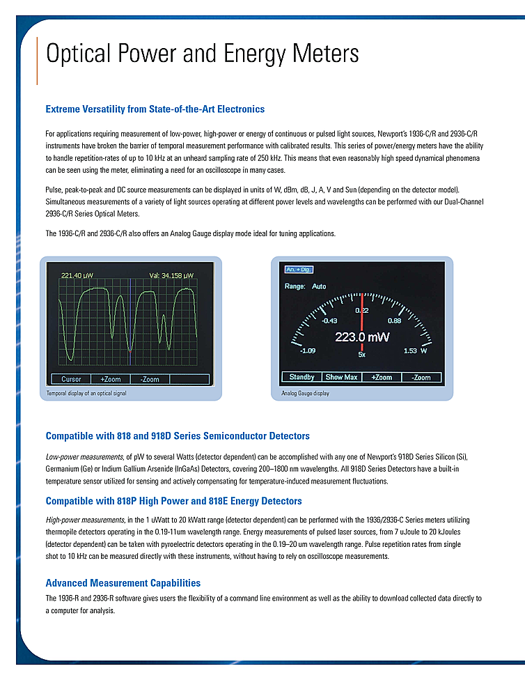 テクノロジー: Thermopile,Integrated Meter / Monitor,Integrating Sphere,Si Photodiode,InGaAs Photodiode,Ge Photodiode,Pyroelectric