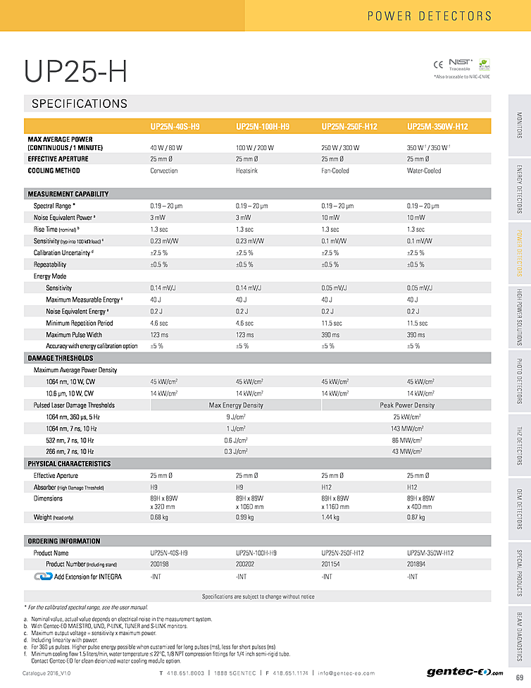 テクノロジー: Thermopile,Integrated Meter / Monitor,Integrating Sphere,Si Photodiode,InGaAs Photodiode,Ge Photodiode,Pyroelectric