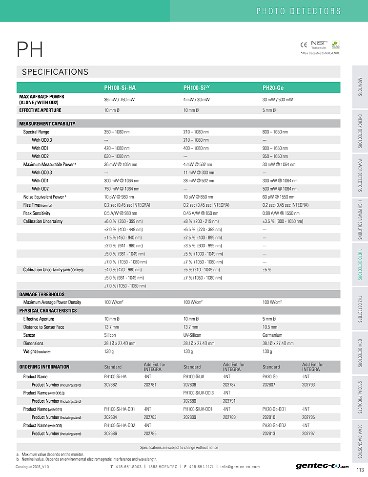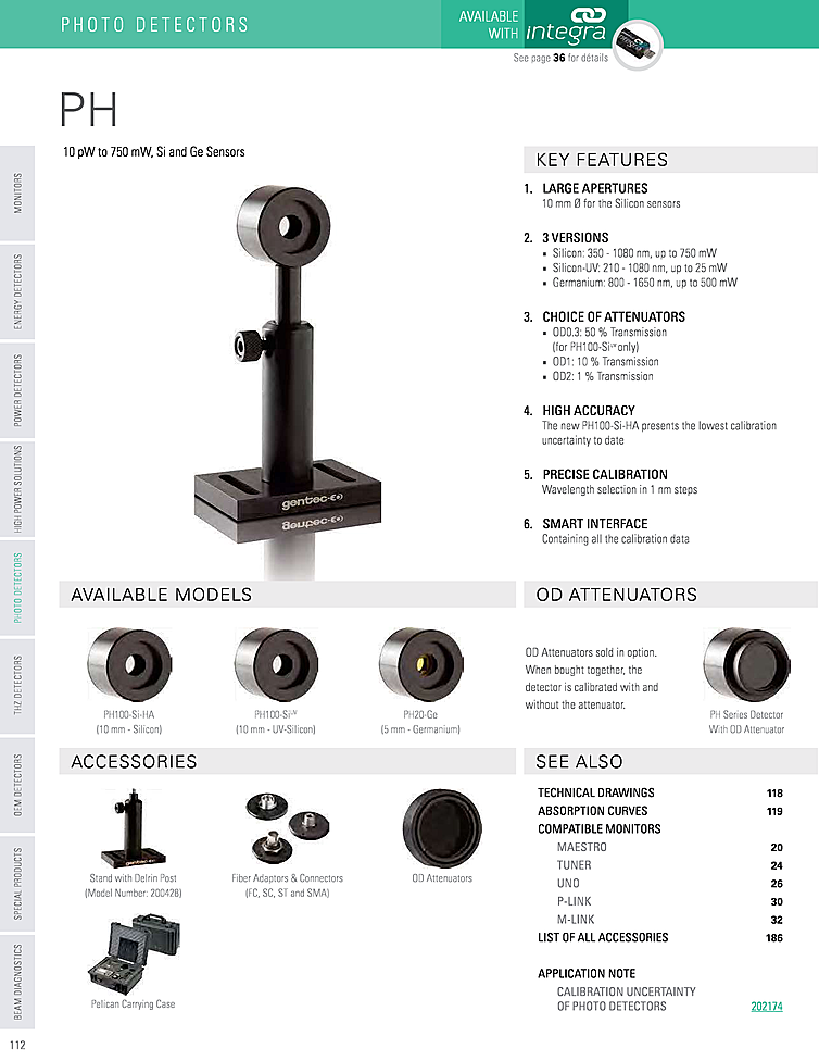 テクノロジー: Si Photodiode,Thermopile,Integrated Meter / Monitor,Integrating Sphere,InGaAs Photodiode,Ge Photodiode,Pyroelectric