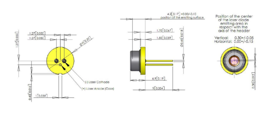 The 9 mm laser TO-can package is a widely accepted industry standard well-suited for low power laser applications. However, the maximum output power is typically limited be the poor heat dissipation properties of the 9 mm package itself. Please contact us to discuss the best package option for your application.