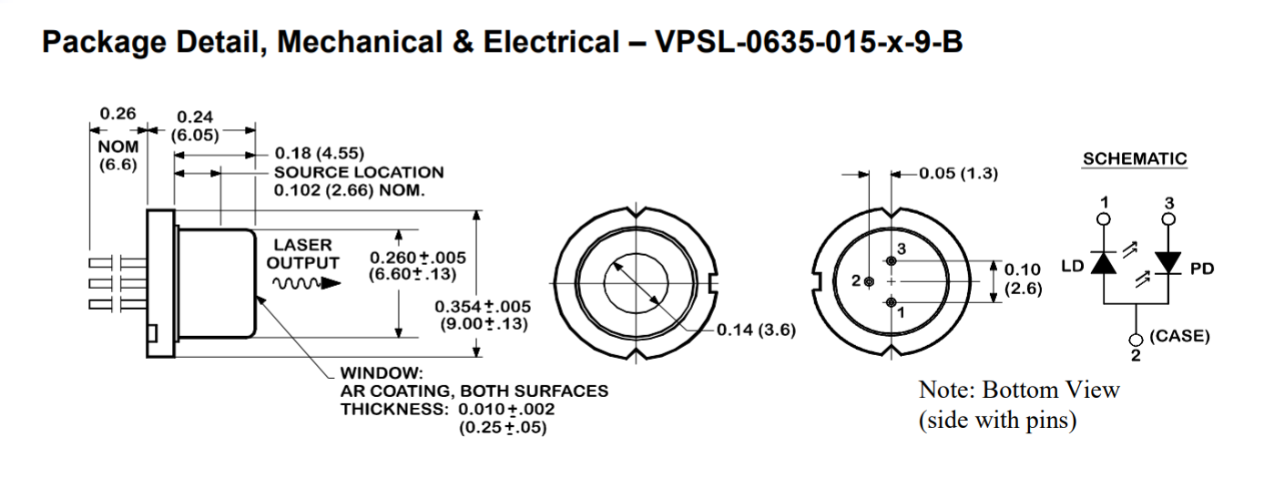 The VPSL-0635-015-x-9-B is a 0.63 µm band, A1GaInP index-guided, multi-quantum well (MQW) laser diode with an integrated, internal, beam correcting optic. It is suitable as a light source for laser levelers and optical equipment for measurement. Hermetic sealing of the package assures high reliability.