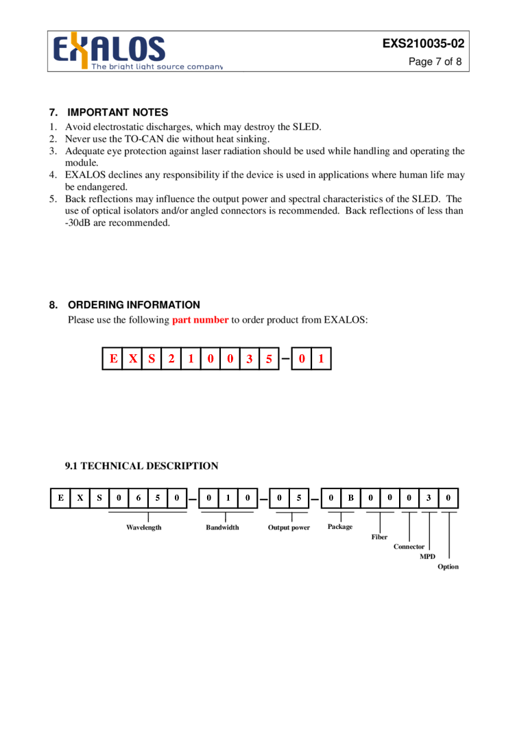 型番: メーカー:EXALOS AG 商品コード:L000348