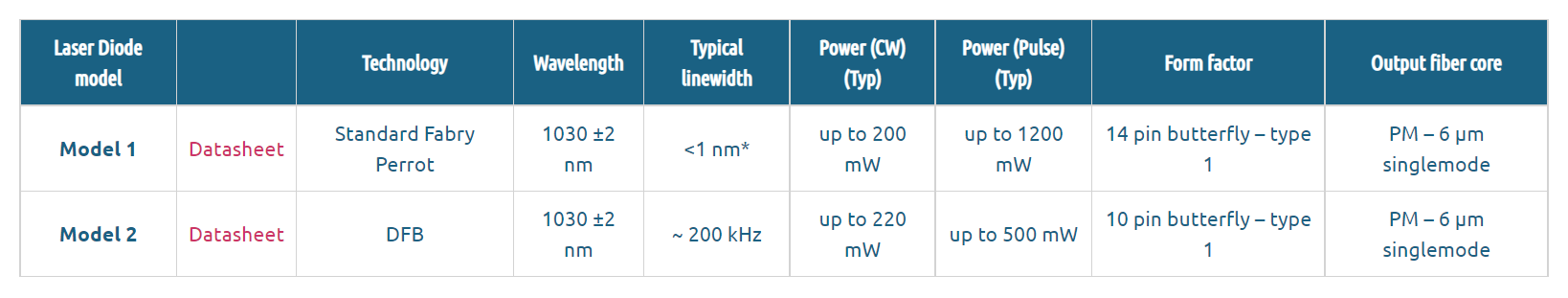 These fiber coupled 1030 nm laser diodes are offered as stock items or associated with a CW or Pulsed Laser Diode Driver. They are compatible with our low noise CW or high speed nanosecond pulsed drivers. Turn-key laser modules with TEC controller are also offered in an open or integrated version.