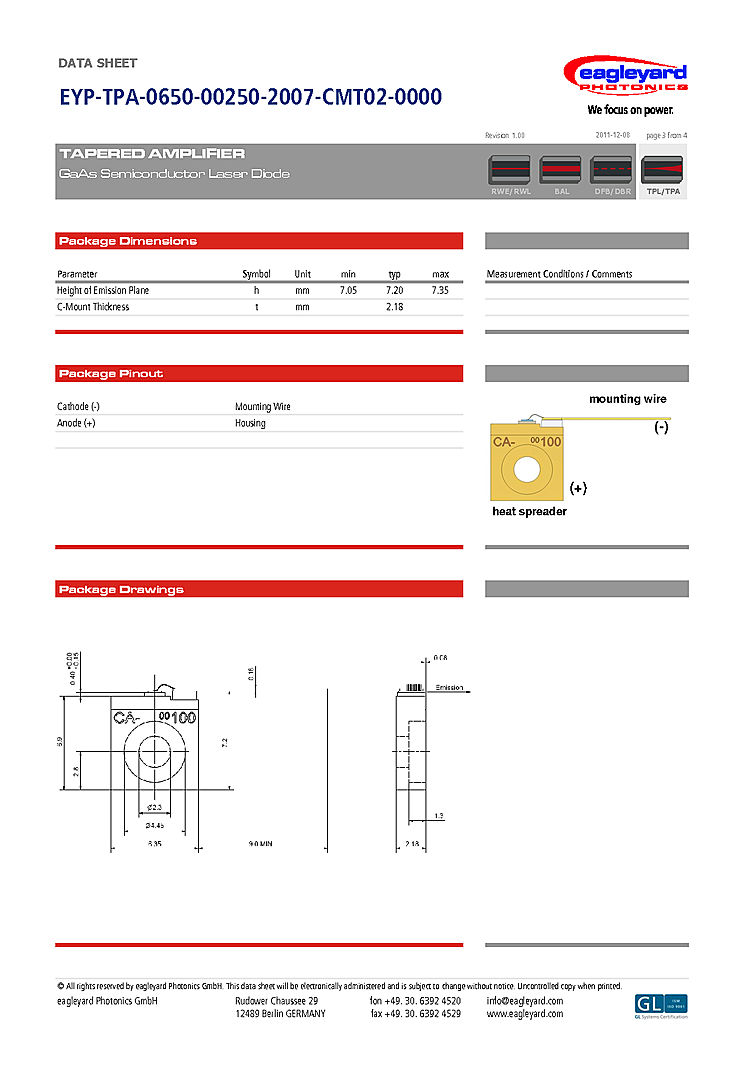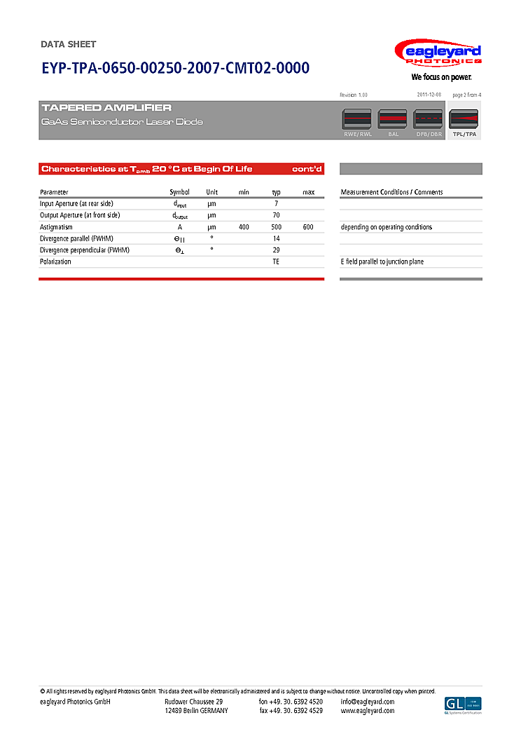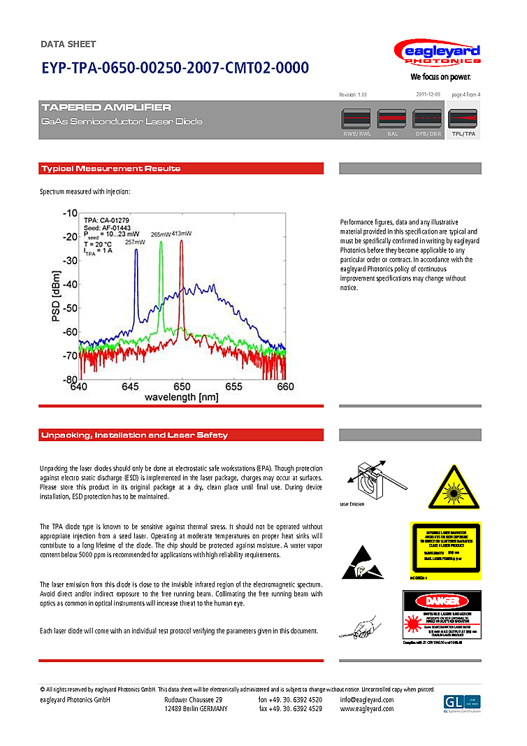 型番: メーカー:eagleyard Photonics GmbH 商品コード:L000397