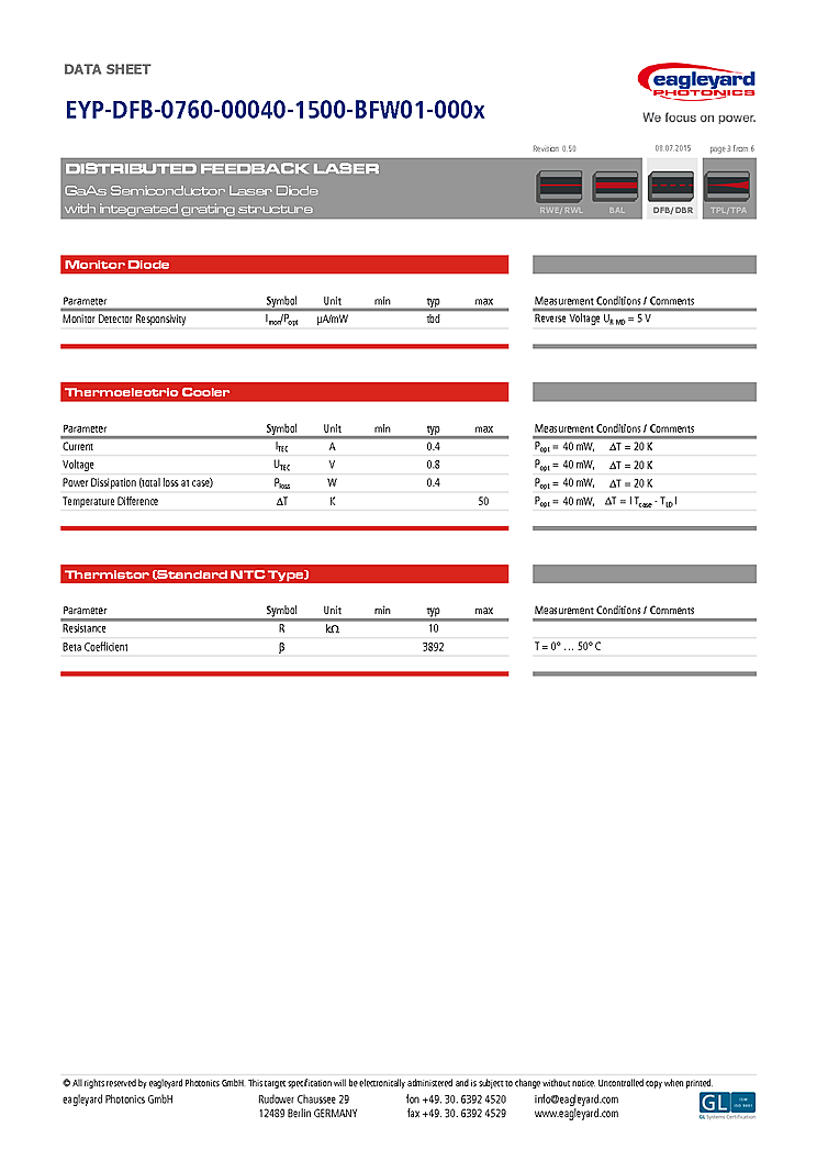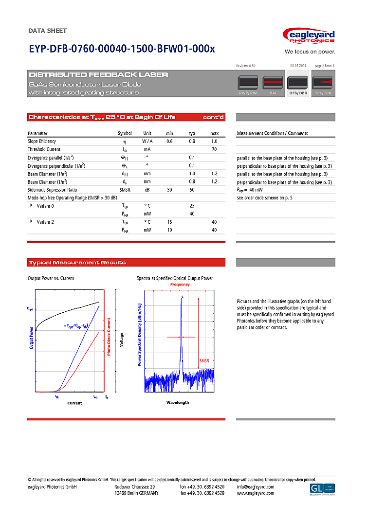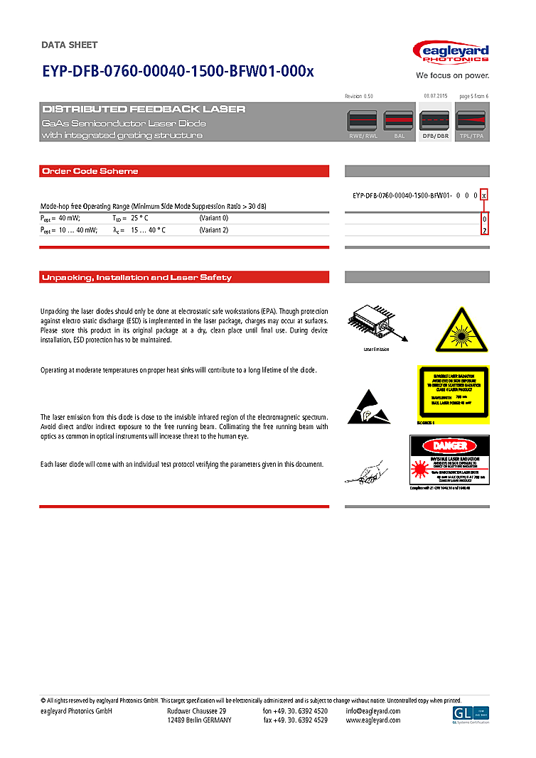 型番: メーカー:eagleyard Photonics GmbH 商品コード:L000410