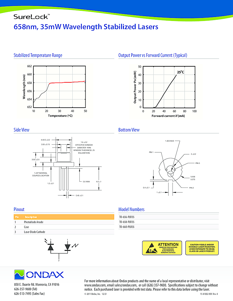For more information about Ondax products and the name of a local representative or distributor, visit www.ondax.com, email sales@ondax.com, or call (626) 357-9600.