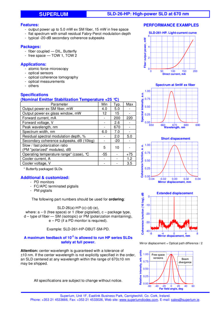型番: メーカー:Superlum Diodes Ltd. 商品コード:L000439