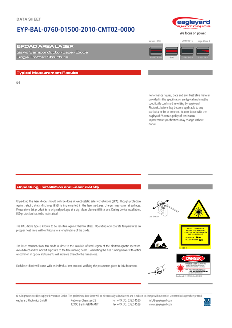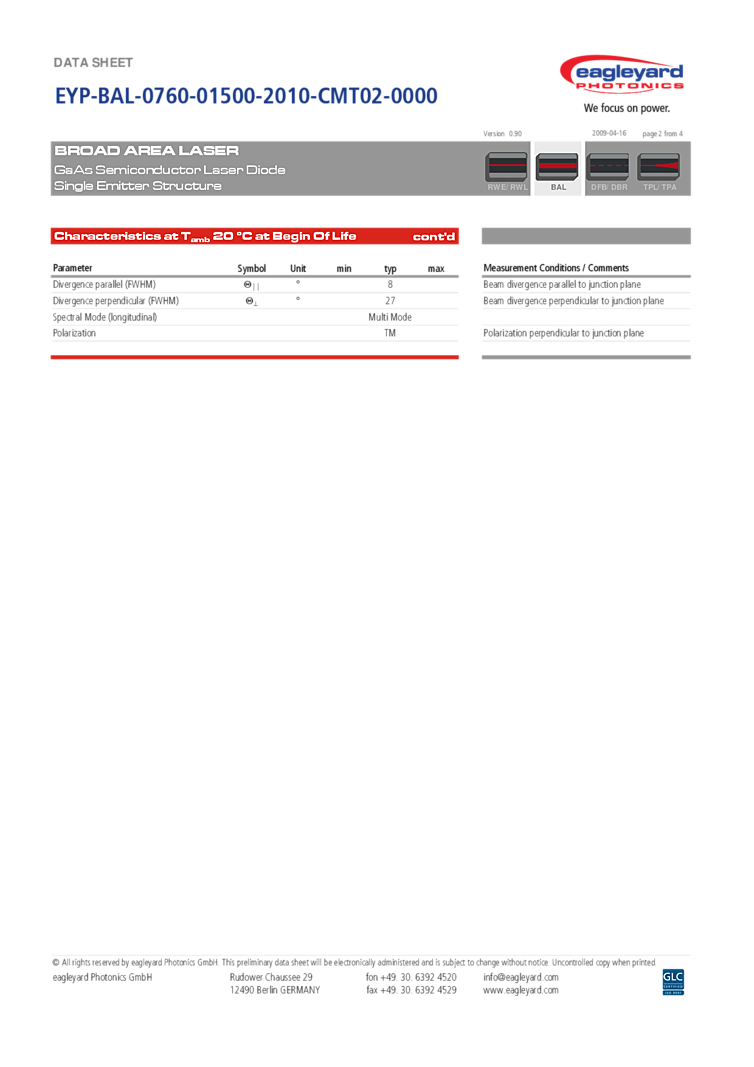 型番: メーカー:eagleyard Photonics GmbH 商品コード:L000476