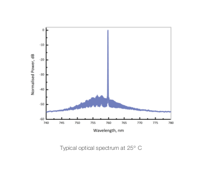 Eblana Photonics laser diode is the perfect tool for TDLAS-based O2 sensing. Eblana's patented Discrete Mode (DM) technology is used to design a cost effective, highly coherent and stable single mode laser. Laser output at 760nm at 3mW.