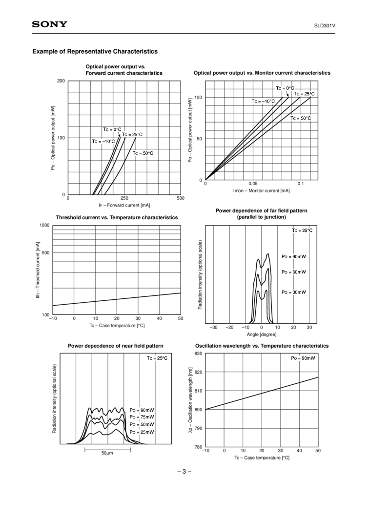 770nm, 840nm The SLD301V is a gain-guided, high-power laser diode fabricated by MOCVD.