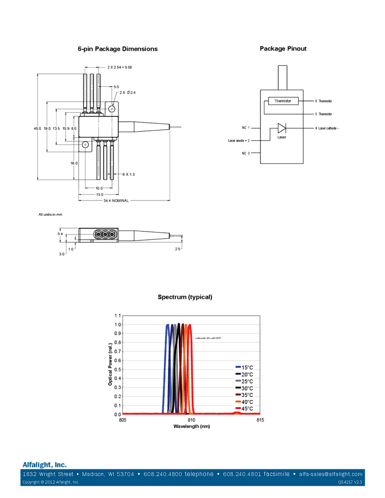 波長: 808nm-808nm 出力: 5000mW-5000mW パッケージ: 6pin butterfly テクノロジー: narrow linewidth