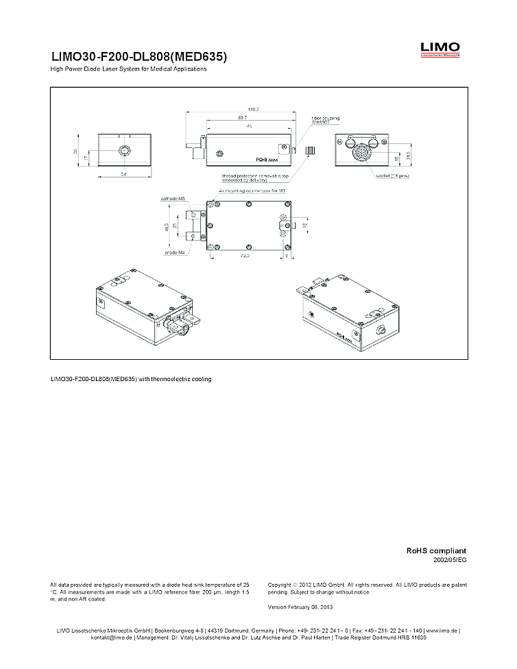 808nm LIMO30-F200-DL808(MED635) High Power Diode Laser System for Medical Applications