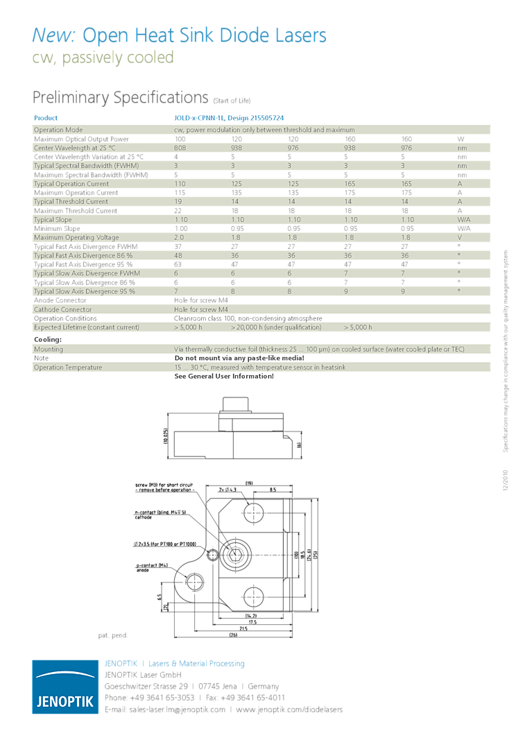 波長: 808nm-808nm 出力: 100W-100W パッケージ: open heat sink, array テクノロジー: high power laser array