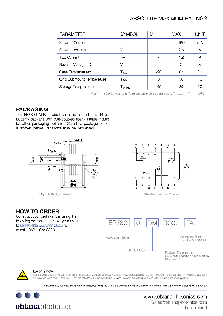 型番: メーカー:Eblana Photonics Ltd. 商品コード:L000691