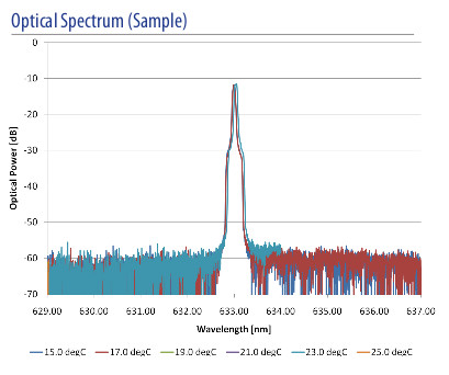 Compact wavelength stabilized 633nm laser diode from Ondax with output power up to 70mW. Spectral linewidth of 150 MHz (typical 0.06nm). TO-can footprint for integration into systems or laboratory use.