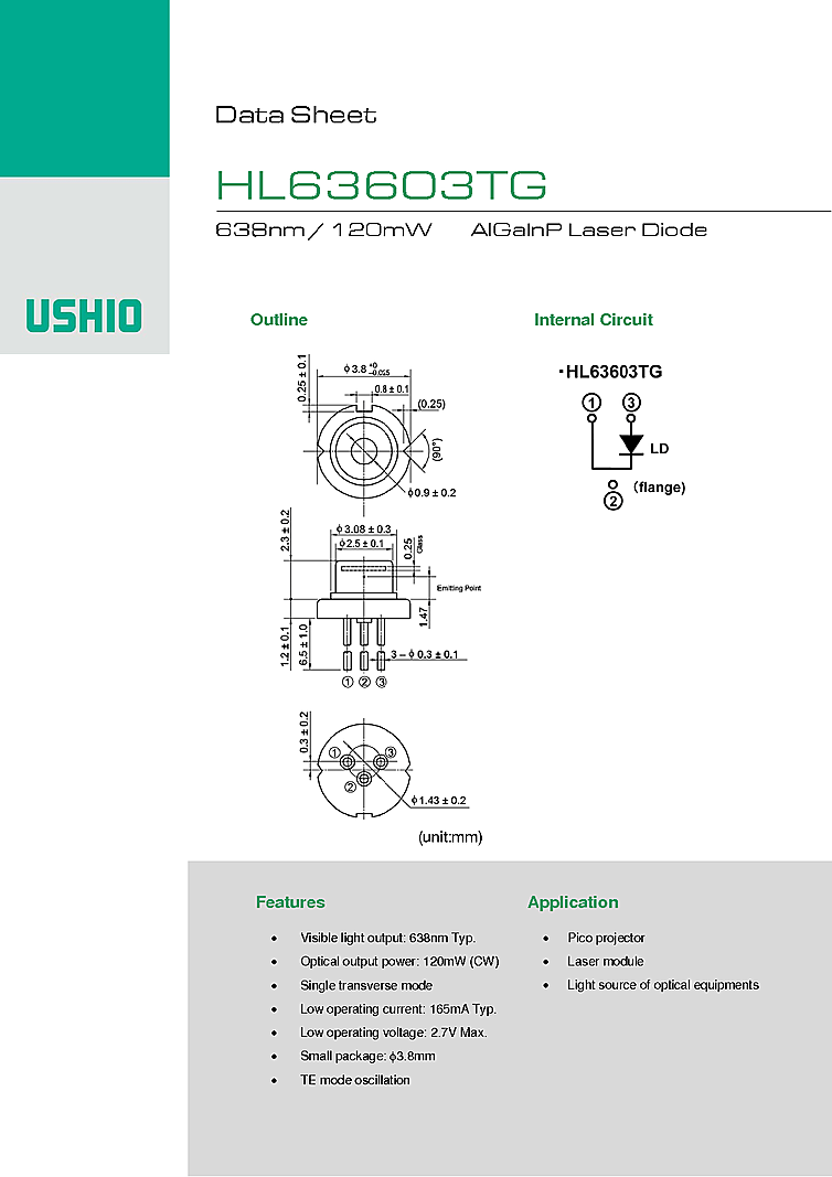波長: 638nm-638nm 出力: 120mW-120mW パッケージ: TO-Can テクノロジー: AlGaInP Laser Diode