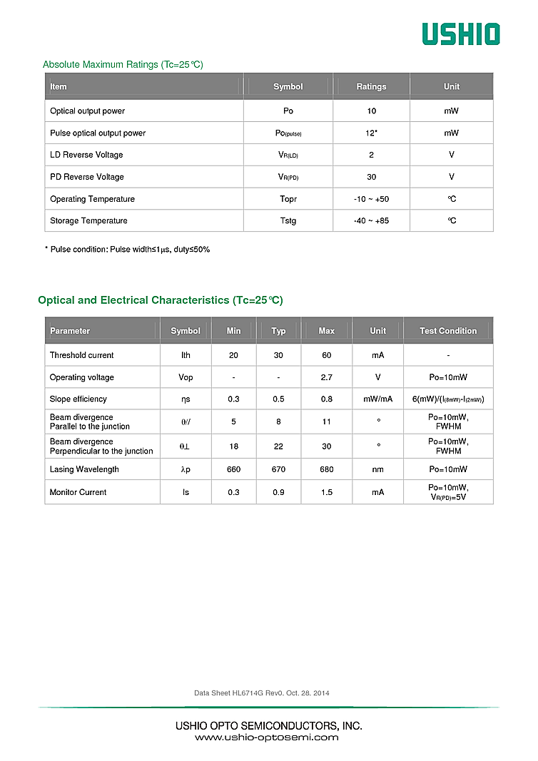 波長: 670nm-670nm 出力: 10mW-10mW パッケージ: TO-Can