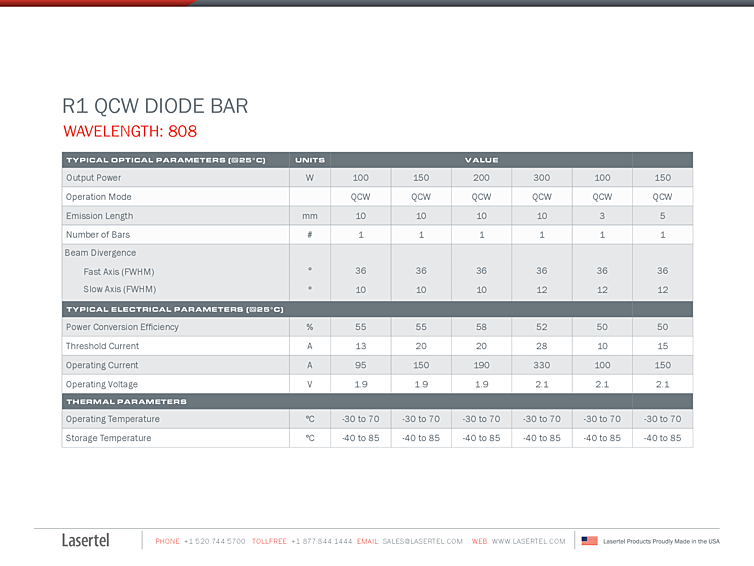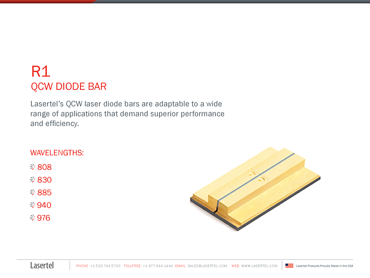 波長: 808nm-976nm 出力: 300W-300W パッケージ: laser diode bar テクノロジー: high power laser bar, QCW
