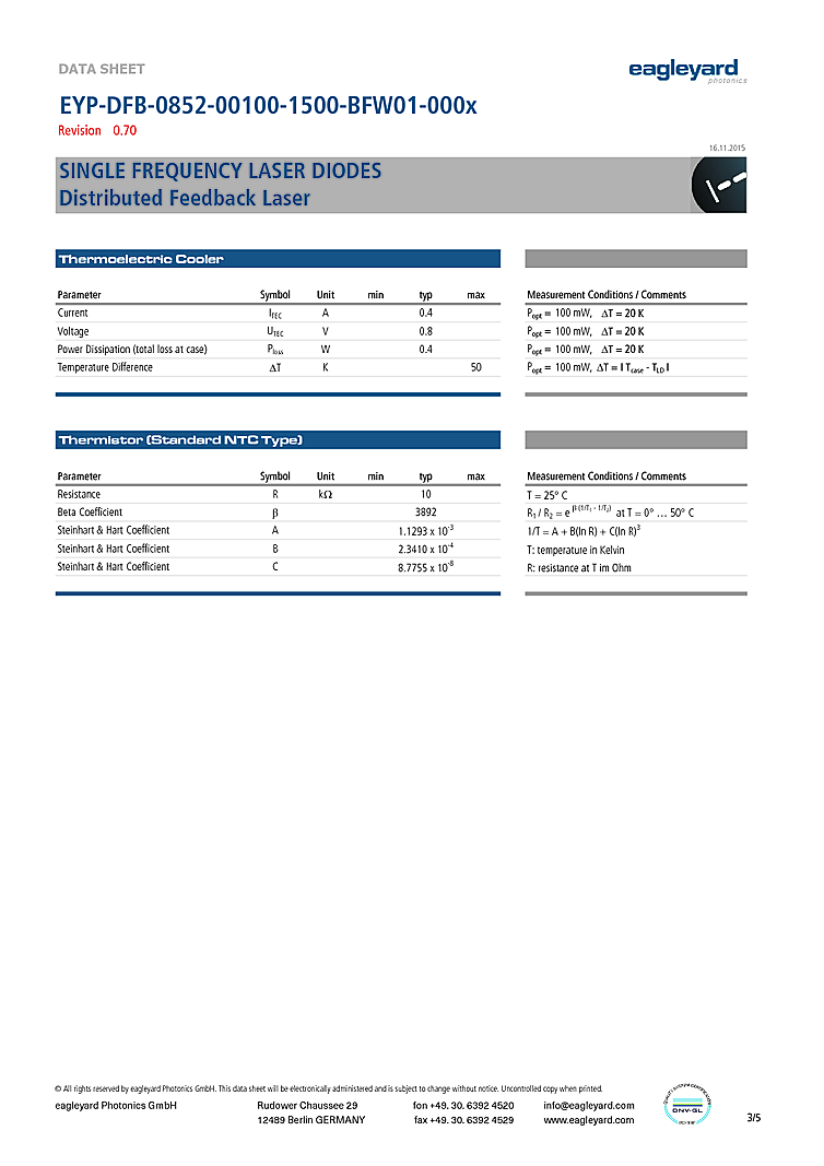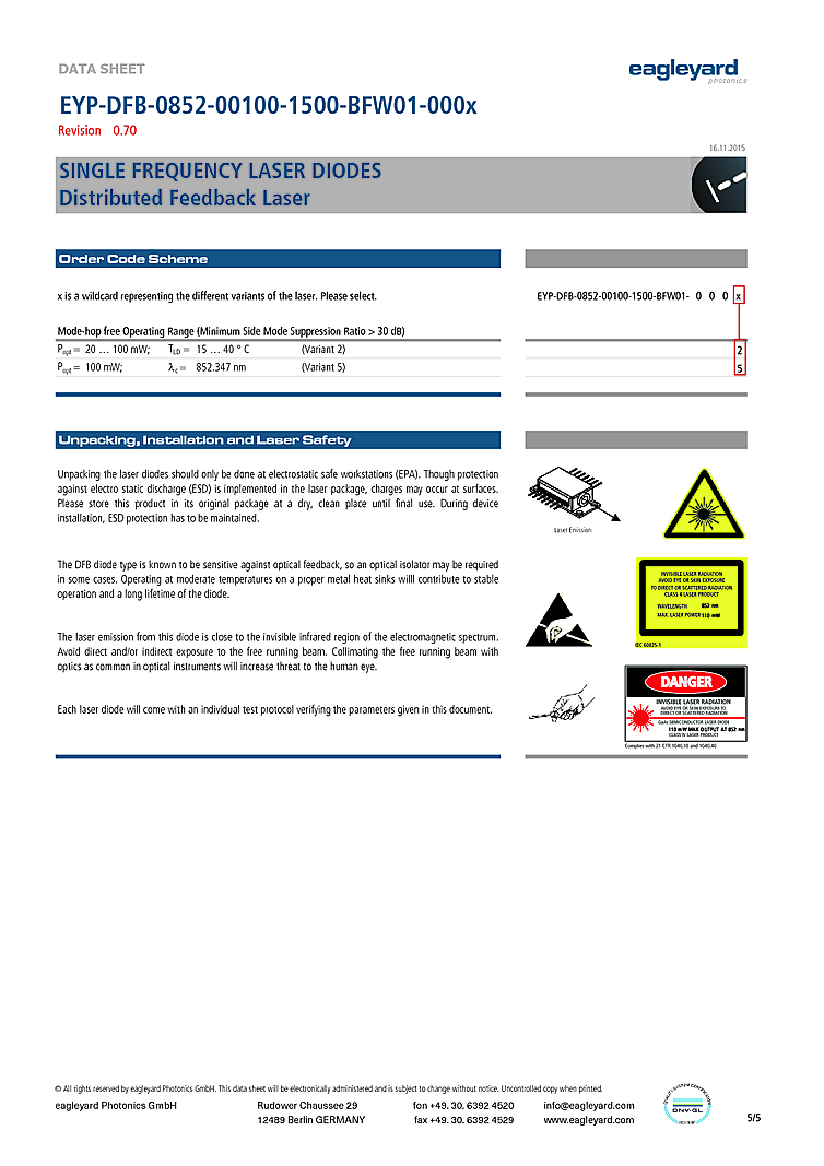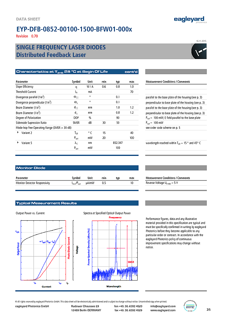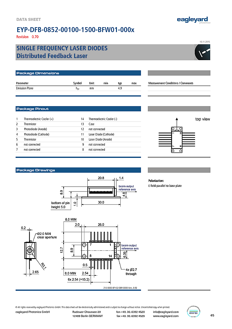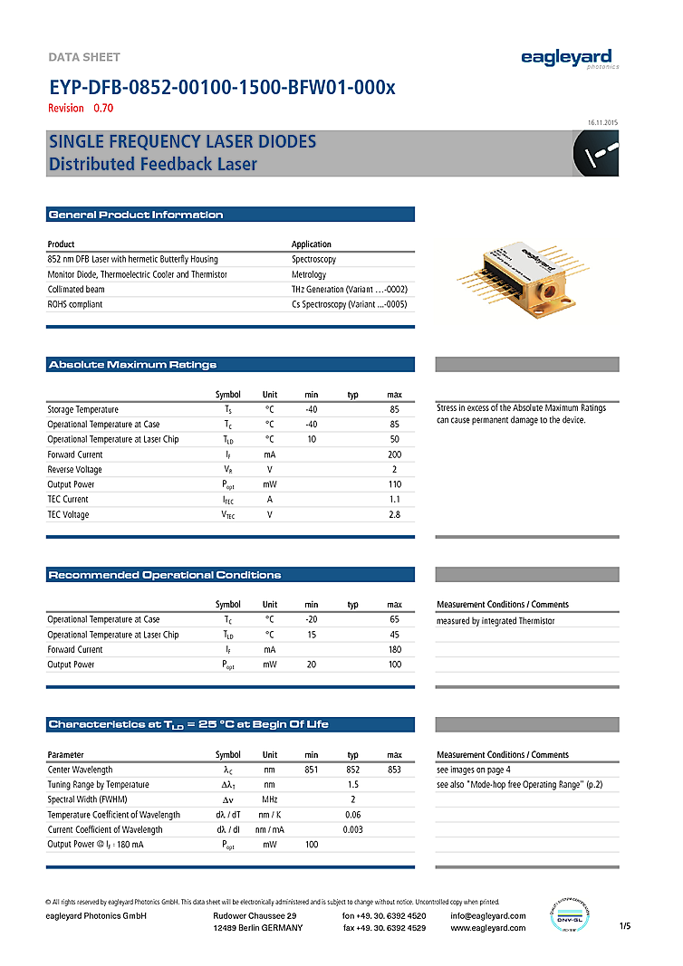 型番: メーカー:eagleyard Photonics GmbH 商品コード:L000782