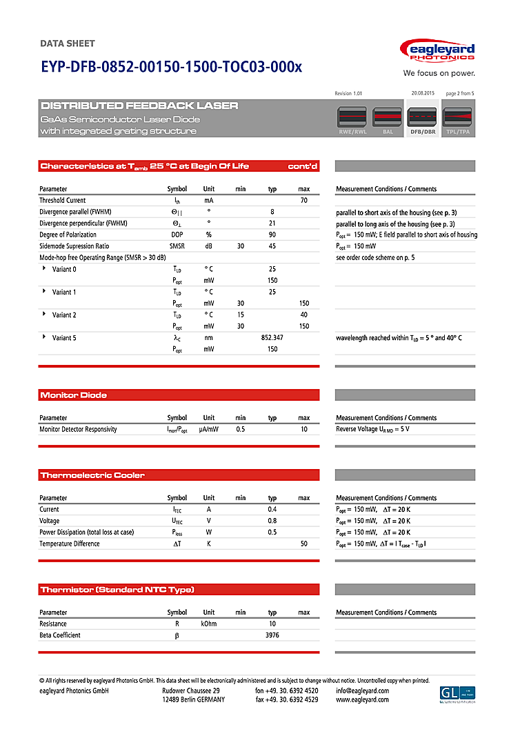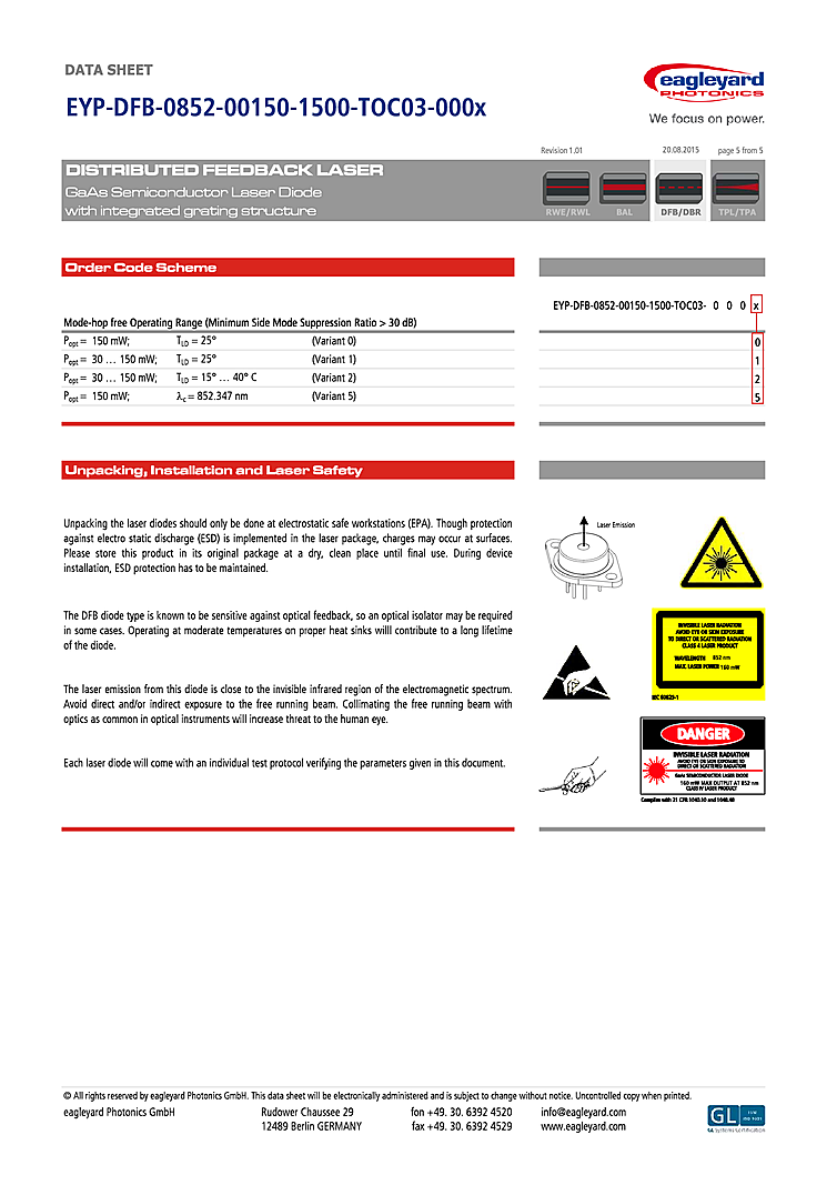 型番: メーカー:eagleyard Photonics GmbH 商品コード:L000786