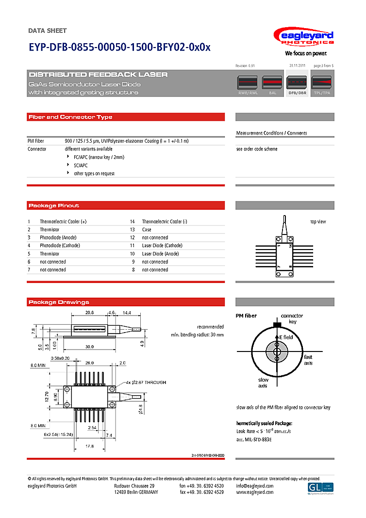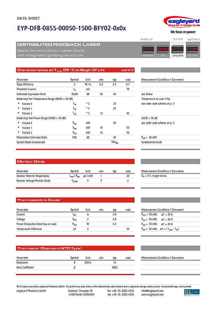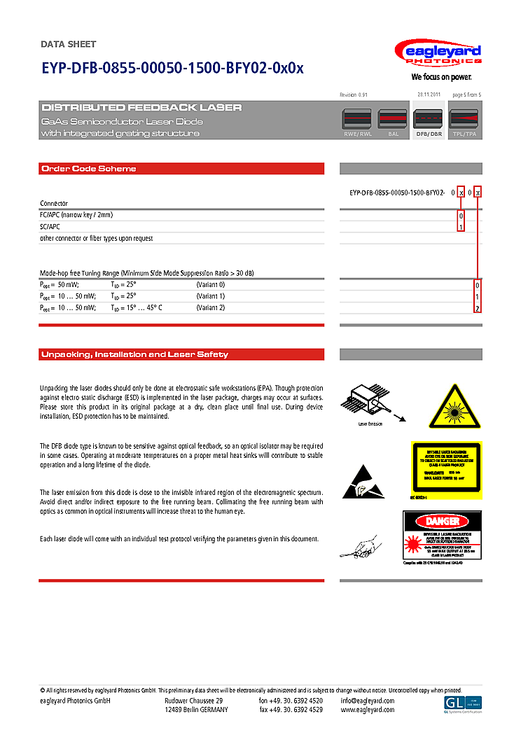 型番: メーカー:eagleyard Photonics GmbH 商品コード:L000798