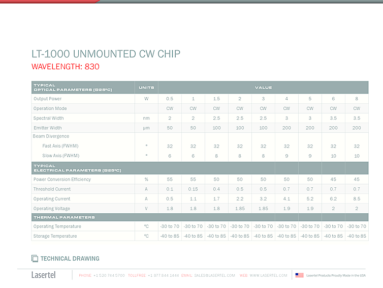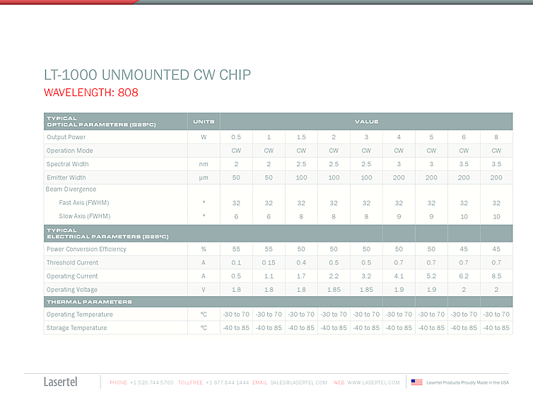 808nm, 830nm, 940nm, 976nm 8000mW laser diode chip, COC
