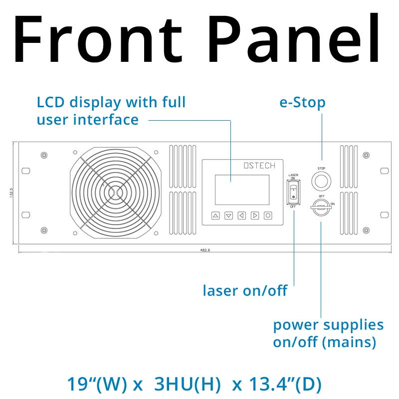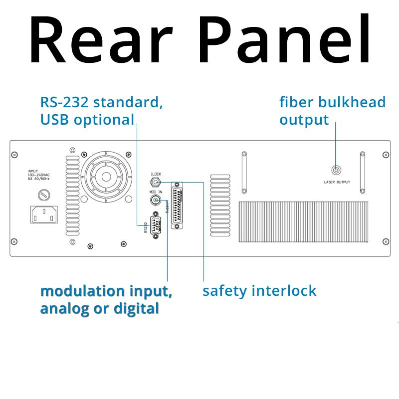 Multiple laser diode protection features ensure that the laser diode module is protected at all times, while the high power temperature controller with full PID control loop provides fast and efficient heat removal. Users have full control of the laser module power through the front panel interface or remotely by USB.