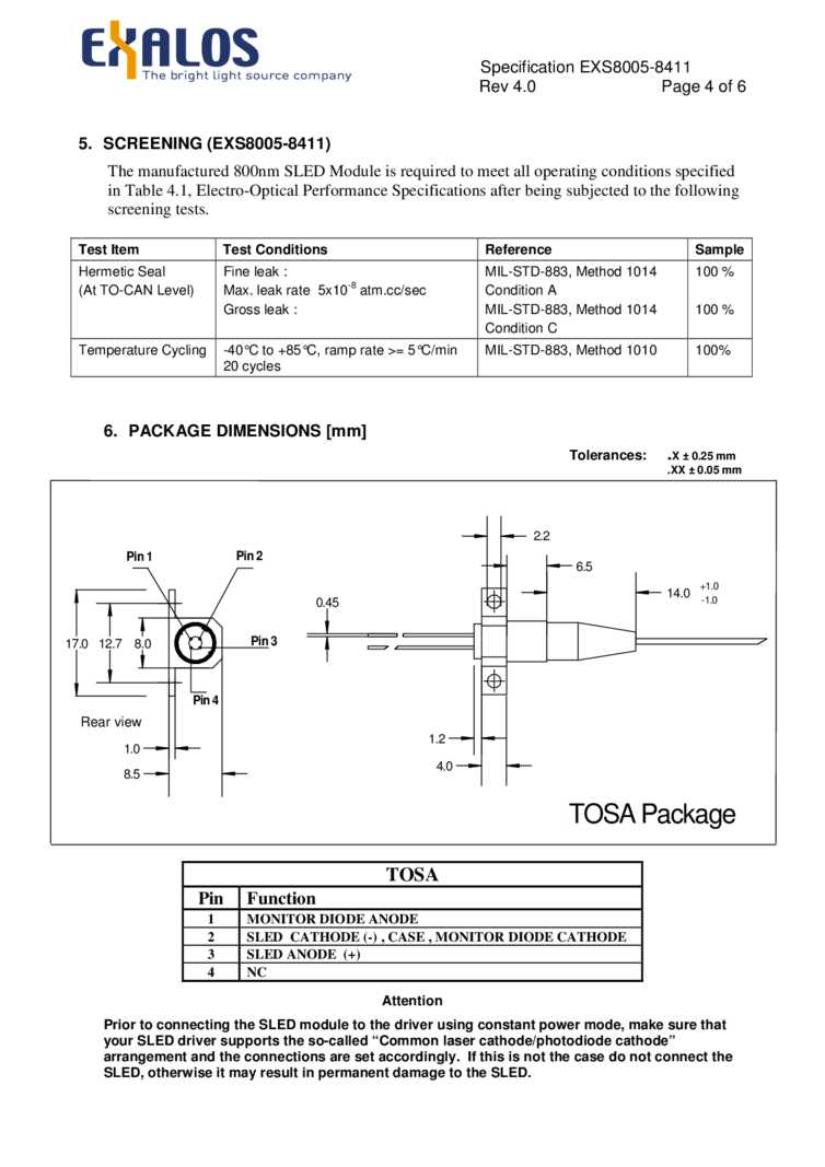 波長: 800nm-800nm 出力: 2mW-2mW パッケージ: TOSA テクノロジー: SLED