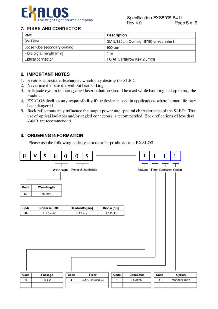 型番: メーカー:EXALOS AG 商品コード:L000878