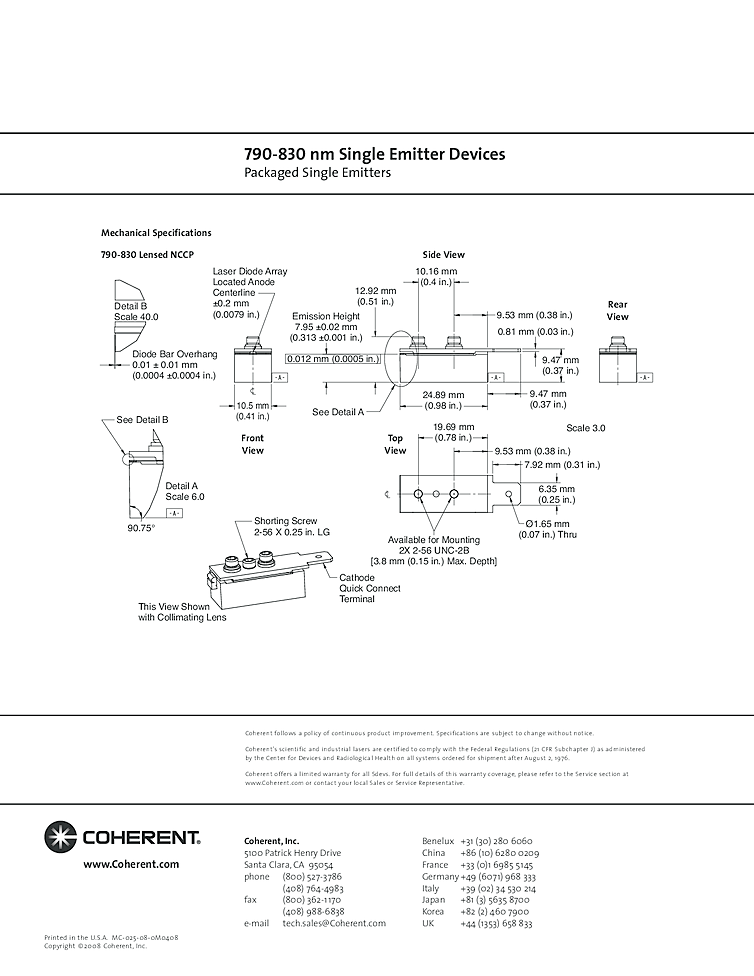 805nm 790-830 nm Single Emitter Devices, Packaged Single Emitters