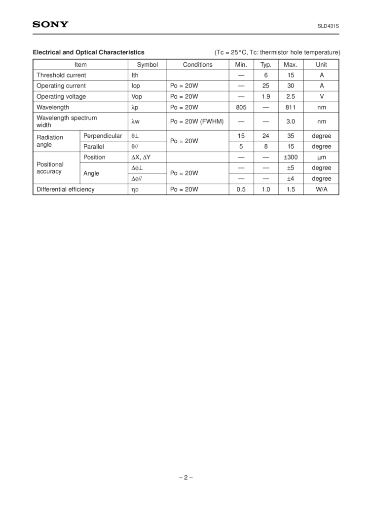 805nm, 811nm 20W Array Laser Diode from Sony: The SLD431S is a high power laser diode with an array structure, which achieves 20W high power.