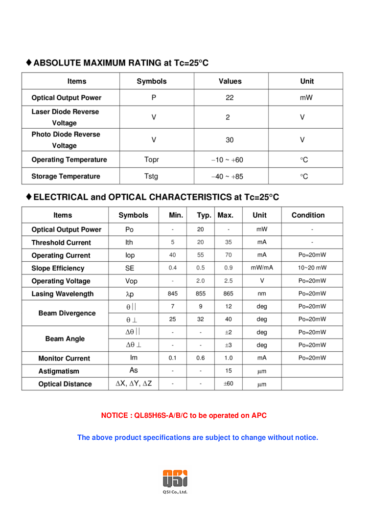 波長: 850nm-850nm 出力: 20mW-20mW パッケージ: TO-can テクノロジー: n/a
