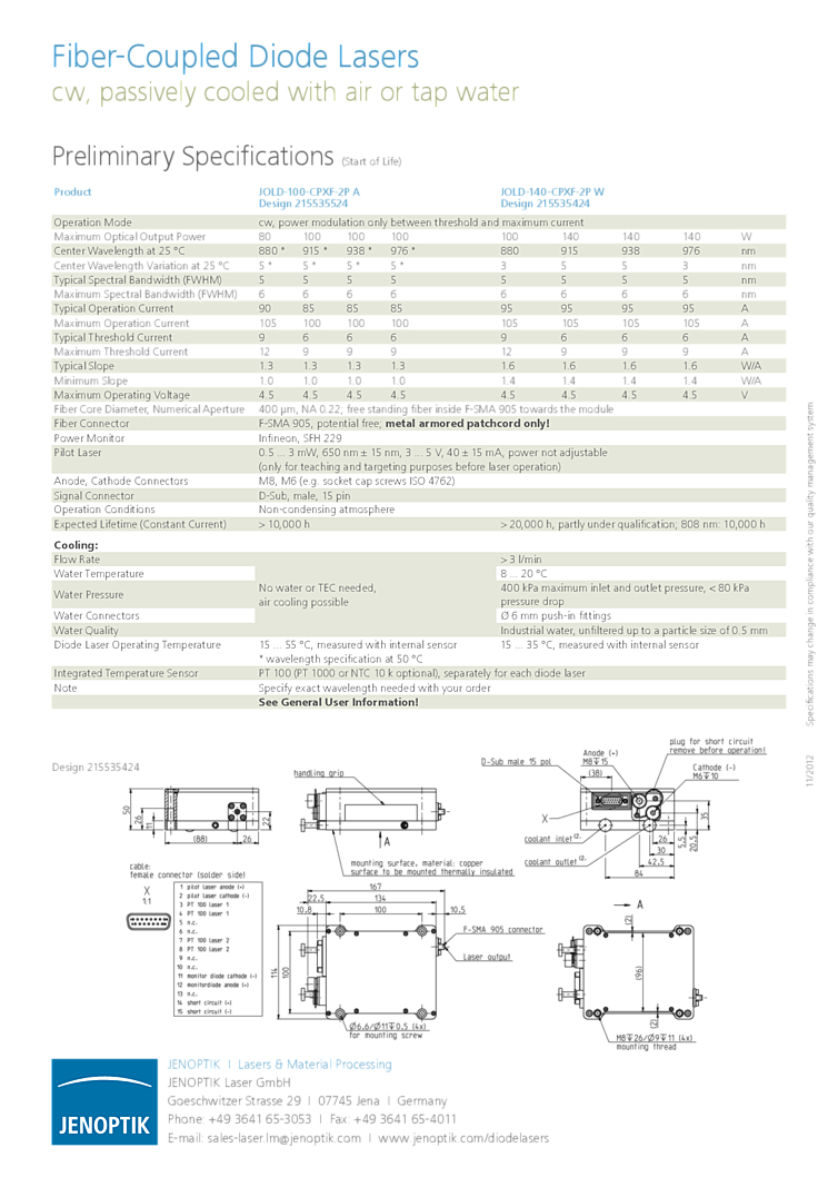 波長: 880nm-880nm 出力: 100W-100W パッケージ: fiber coupled module テクノロジー: high power array