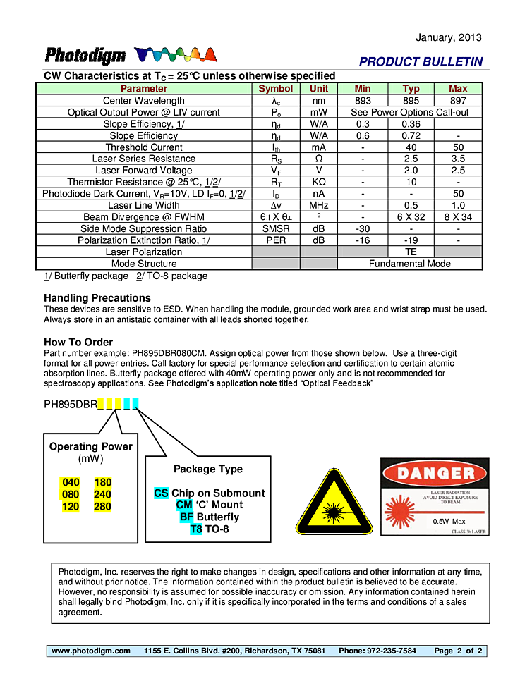 895nm 280mW TO-can, c-mount, butterfly DBR