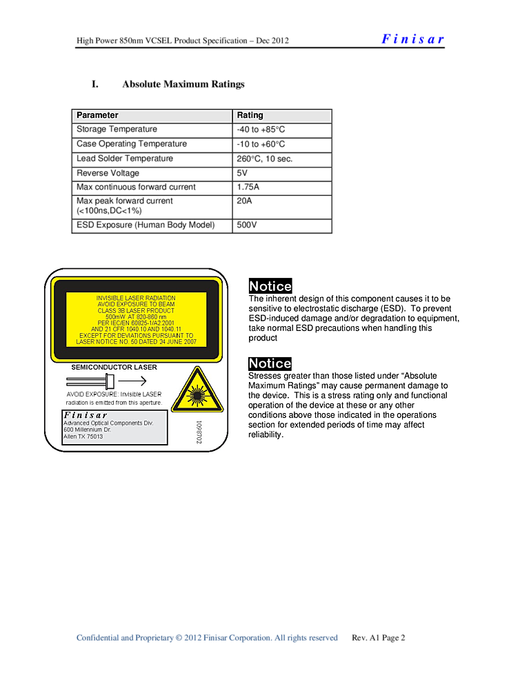 型番: メーカー:Finisar Corporation 商品コード:L000996