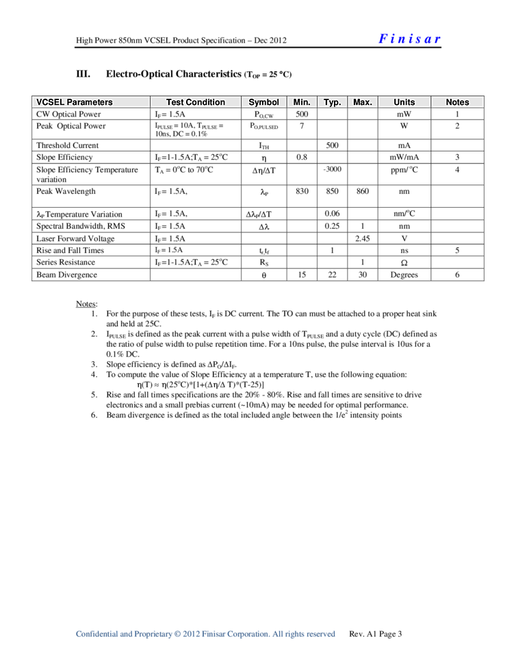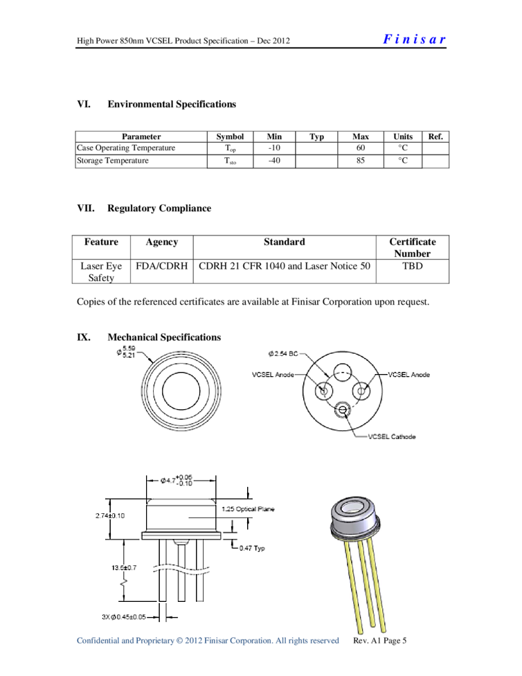 850nm Finisar has developed a 2D VCSEL array TO based component that is specifically targeted towards use in gesture recognition and 3D camera applications. This specific product is packaged in a TO-46 can with a 2D VCSEL that is capable of delivering more than 500mW of CW power at room temperature. The intended use is with short electrical pulses (