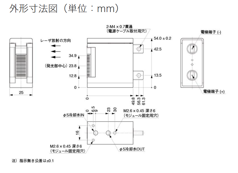 尚、オプションで、LDバーの発光エリア前面にコリメートレンズを取り付けて、Fast軸のビーム広がりを平方向にすることも可能です