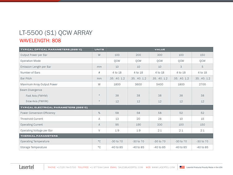 波長: 808nm-976nm 出力: 300W-300W パッケージ: QCW, array テクノロジー: high power array, QCW