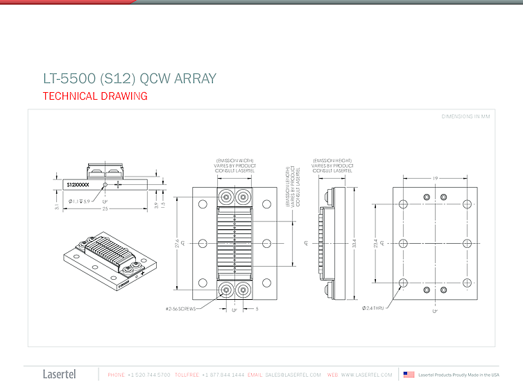 波長: 808nm-976nm 出力: 300W-300W パッケージ: QCW, array, S12 テクノロジー: high power array, QCW