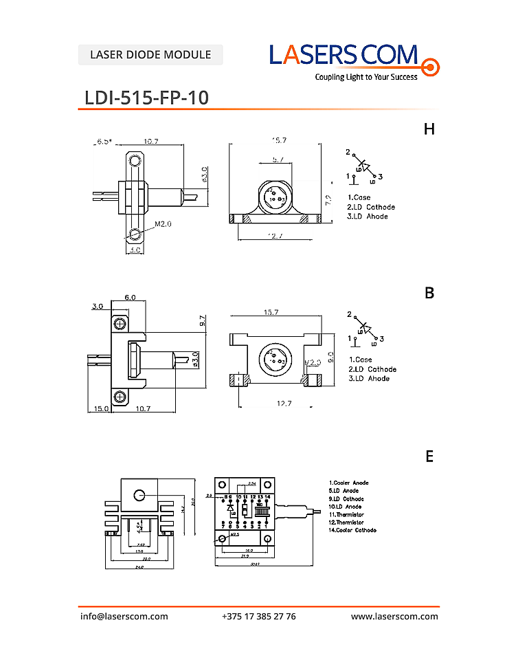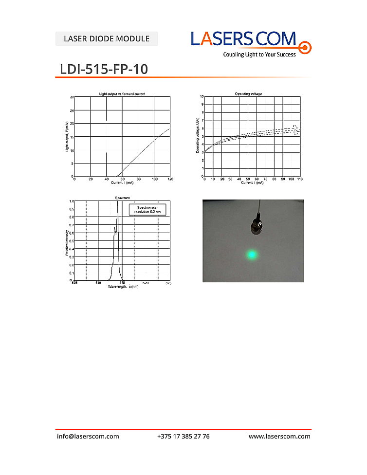 波長: 515nm-515nm 出力: 20mW-20mW パッケージ: TO-Can / DIL テクノロジー: Fabry-Perot