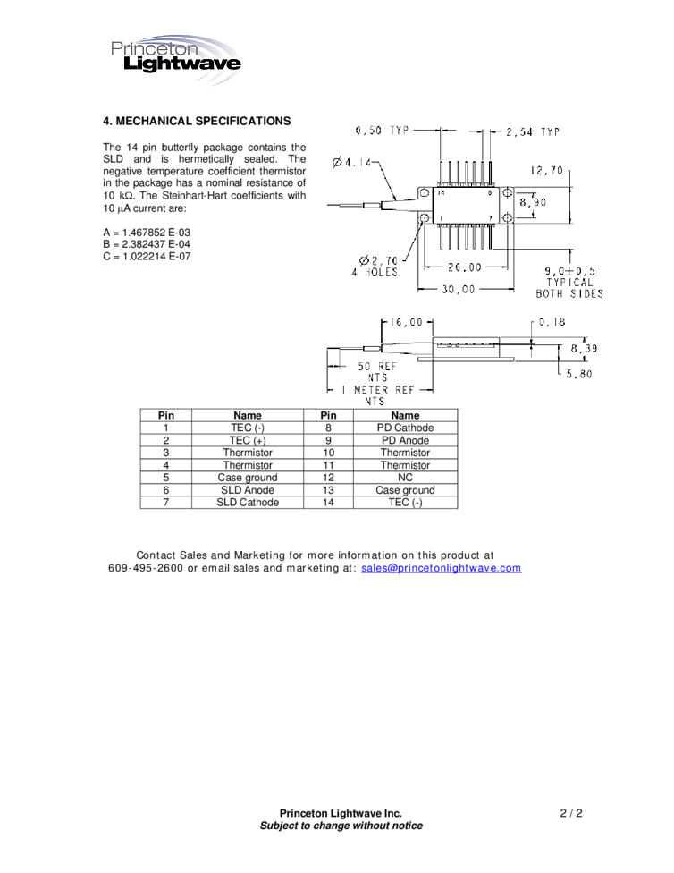 Based on Princeton Lightwave’s advanced high power angled ridge waveguide structure platform, we have developed a series of products to meet a wide range of application needs. This 4 µm ridge, angled chip, in a GaAs structure for 820nm, is packaged in a thermo-electric cooled standard butterfly package and can be pigtailed with either SMF or polarization maintaining fiber (PMF).
