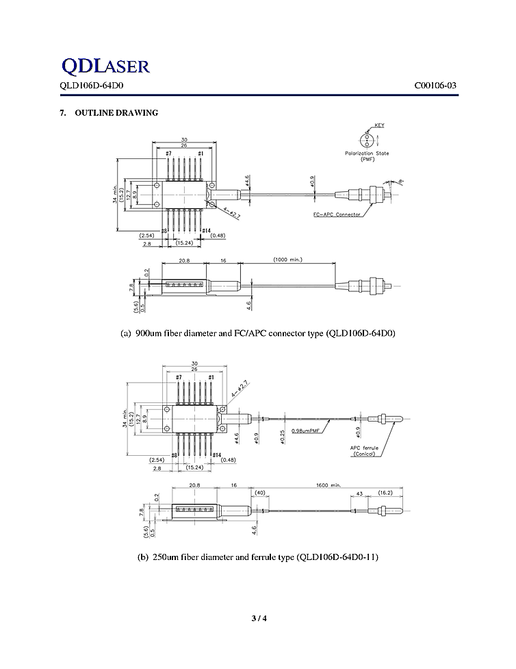- Fiber-pigtailed 14-pin butterfly package with a TEC