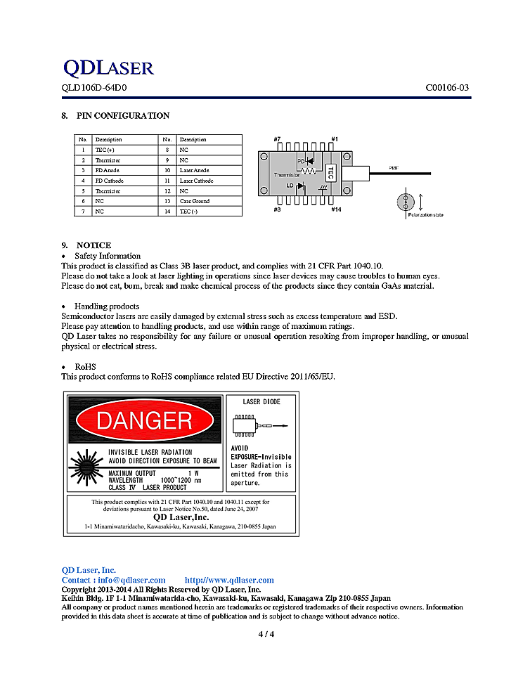 型番: メーカー:QD Laser 商品コード:L001226