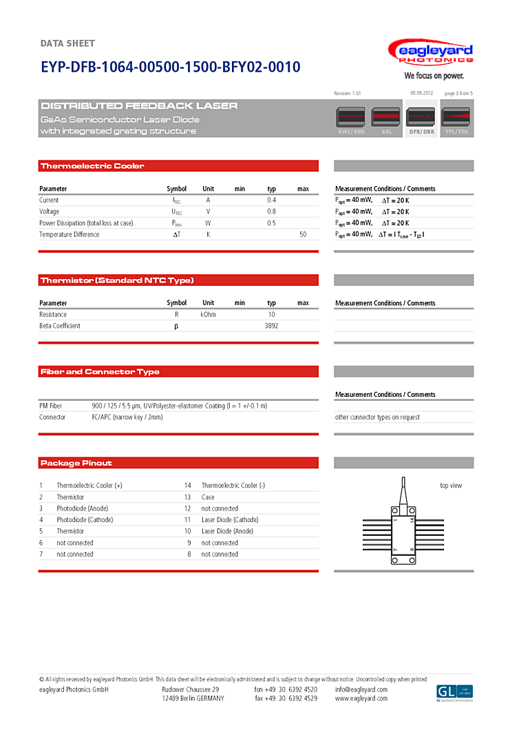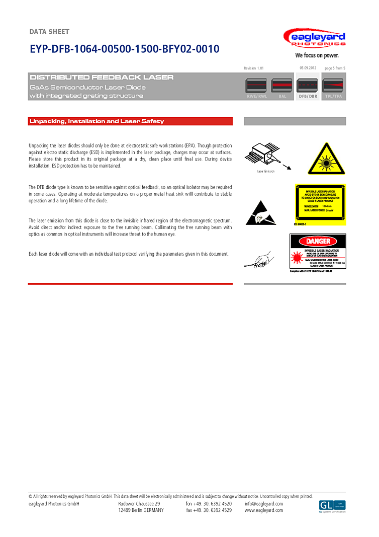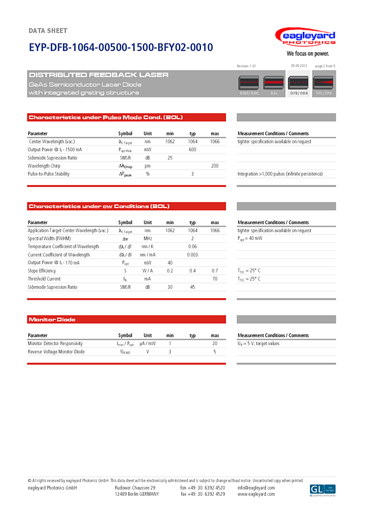 型番: メーカー:eagleyard Photonics GmbH 商品コード:L001236