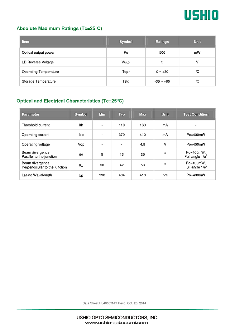 波長: 404nm-404nm 出力: 500mW-500mW パッケージ: TO-Can