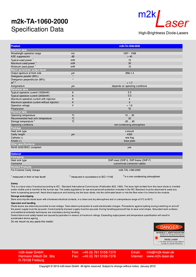 型番: メーカー:m2k-laser GmbH (COHERENT / DILAS) 商品コード:L001362