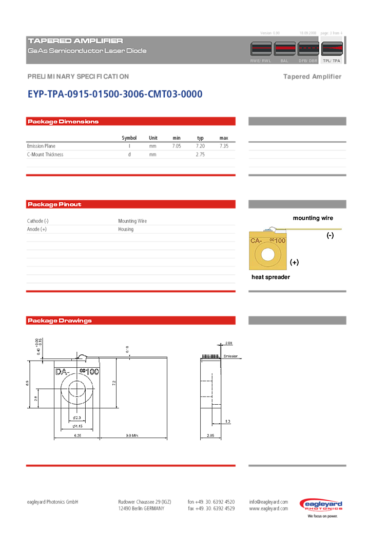 型番: メーカー:eagleyard Photonics GmbH 商品コード:L001387