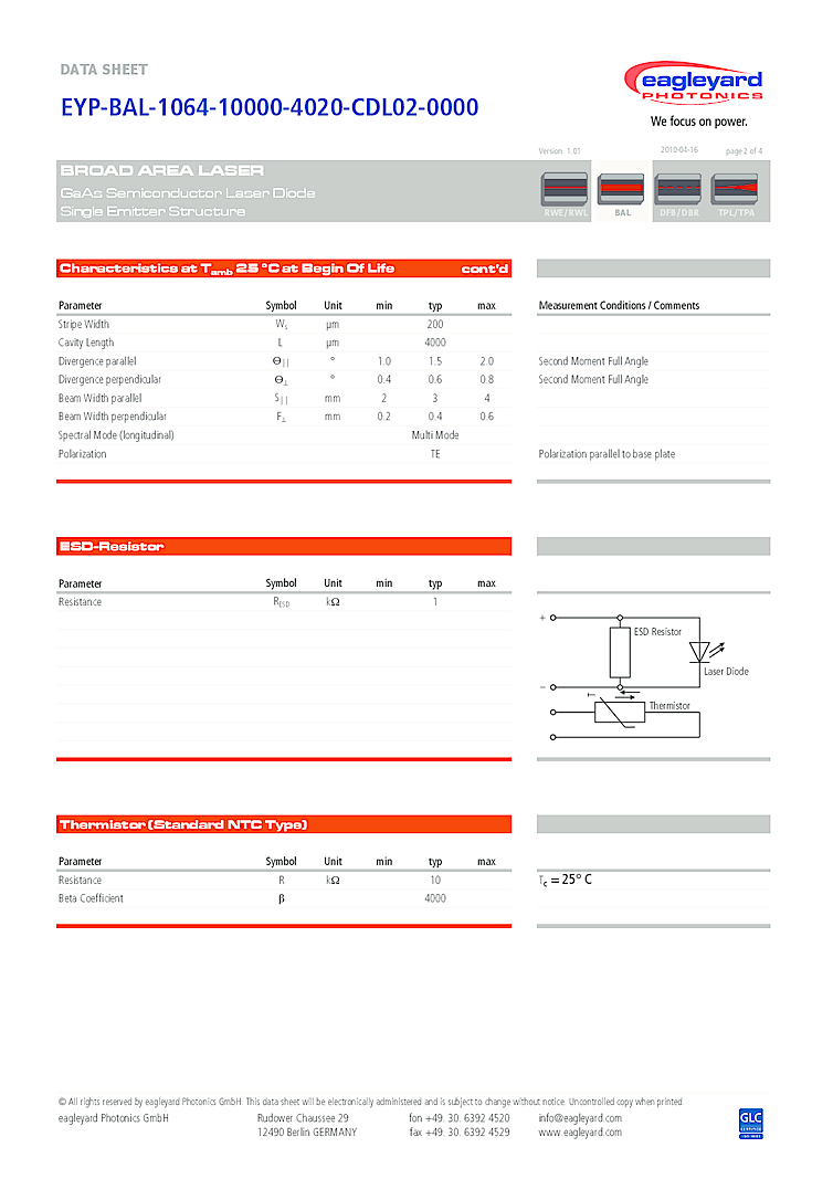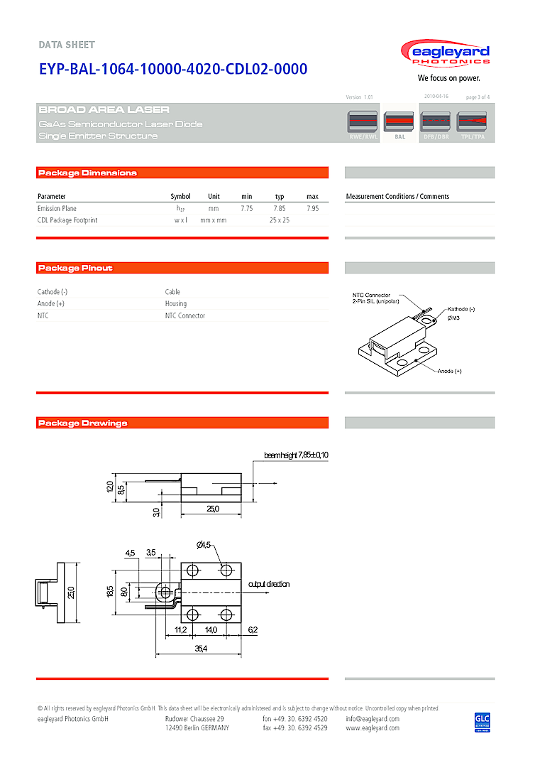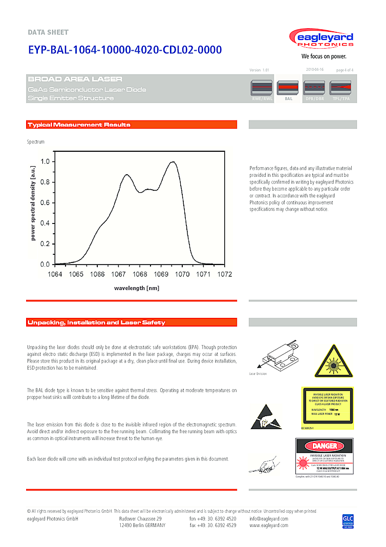 型番: メーカー:eagleyard Photonics GmbH 商品コード:L001487